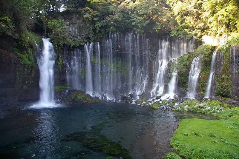 富士山の雪解け水が溶岩断層から湧き出し滝を形成している。水量は毎秒1.5トン。