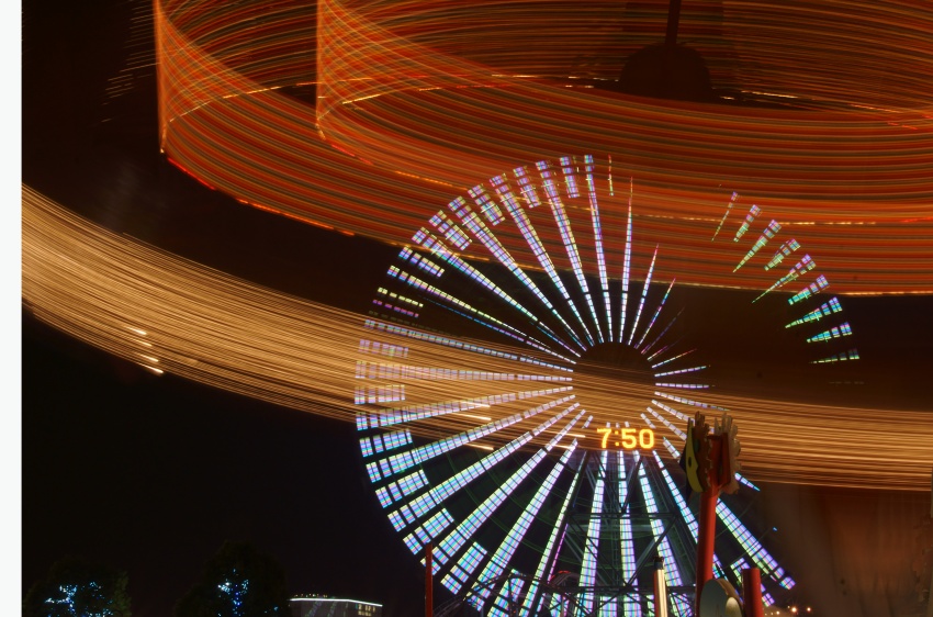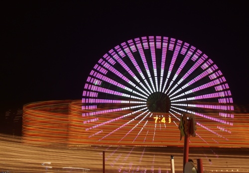横浜みなとみらい21の夜景撮影、横浜コスモワールドからコスモクロックを撮影。
