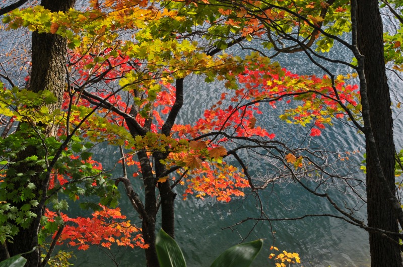 丸沼は海抜1,430m、日光白根山の爆発溶岩によってせきとめられてできた湖。白樺やブナの原始林が湖畔を囲む。