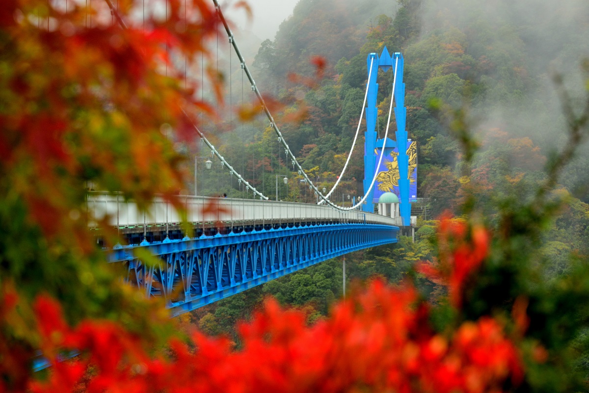 竜神大吊橋は茨城県常陸太田市の高さが100m、長さは375mあり歩行者専用の橋としては本州一の長さを誇つています。