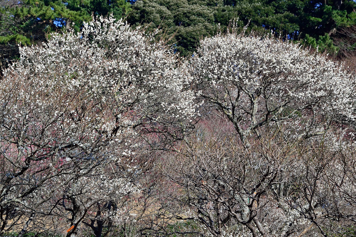 園内には梅の木が59種472本あり、楓や松、キバナアマやスイセンなど四季を通して様々な花草木を楽しむ事が出来ます。