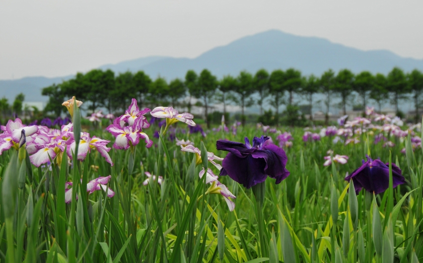 水田地帯の一角に作られた約200種2万株ものハナショウブ
