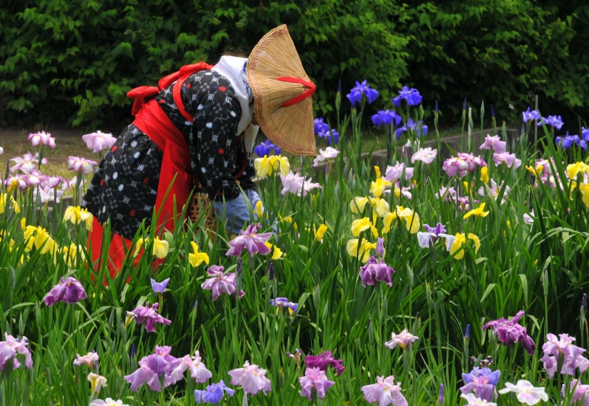 日本有数の規模を誇る7、000m2のしょうぶ田に植えられたハナショウブが