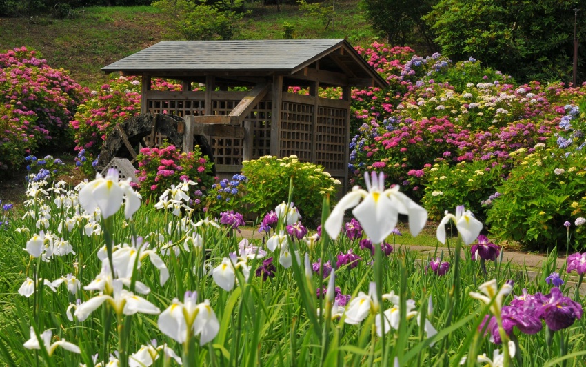 ここはハナショウブの他 ばら、藤、しゃくなげ、スイレンなども楽しめます。