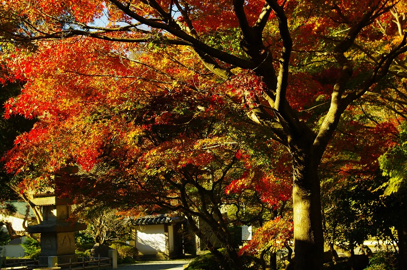 鎌倉最古と言われる茅葺屋根建築の薬師堂も素晴らしく、また山門付近も境内も紅葉の穴場です。