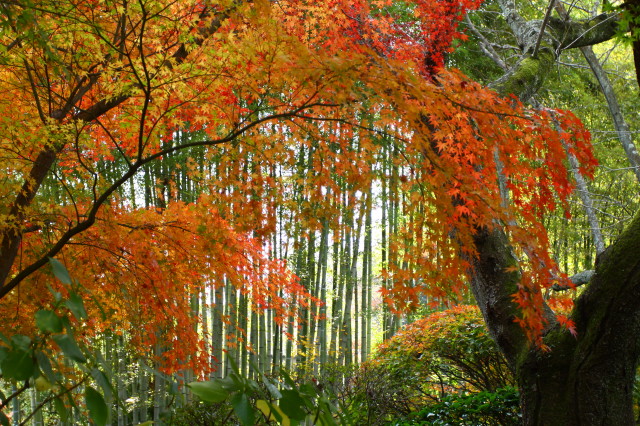 「報国寺」 竹庭のお寺で有名ですが、紅葉時期の竹林も素敵です。