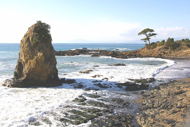 立石とは、波打ち際に突き出した高さ12m、周囲30mの巨岩の呼び名です。