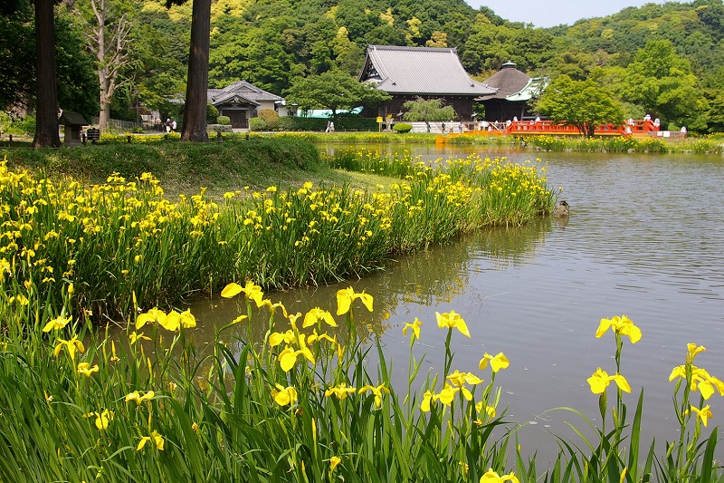 黄色のショウブが見頃