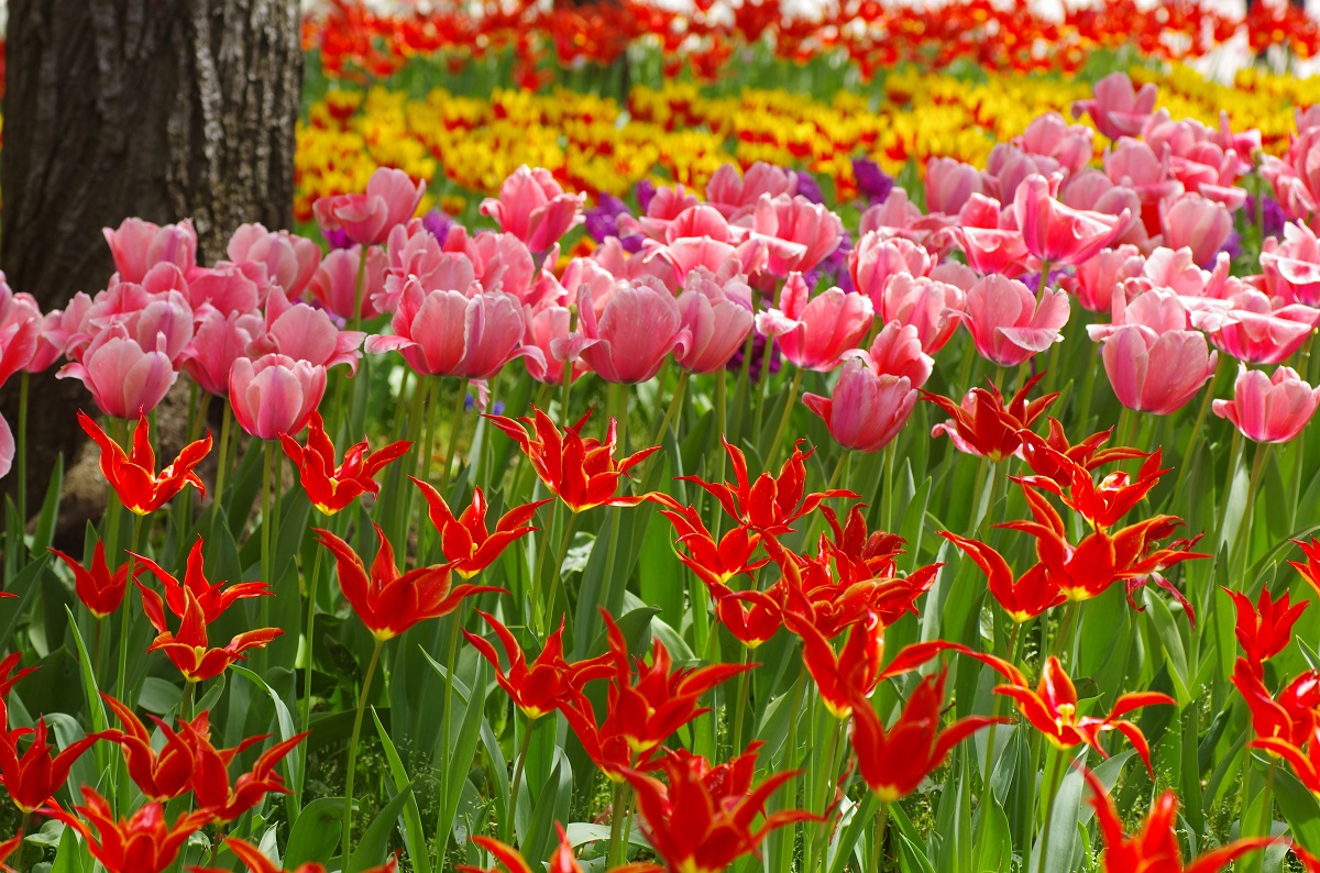横浜公園では、69品種約16万球のチューリップが植えられています。