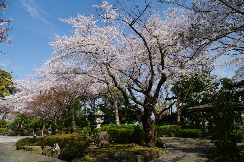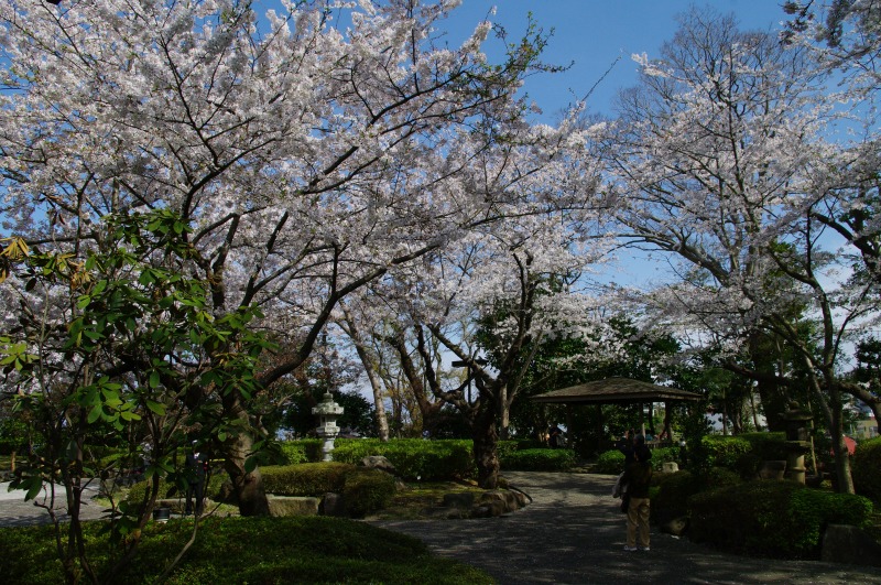 分庁舎の庭を散策しながら、日本庭園と桜の木を見学。 |