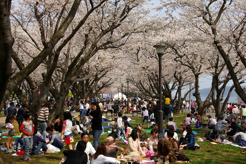 日米親善横須賀さくら祭りのお花見風景。