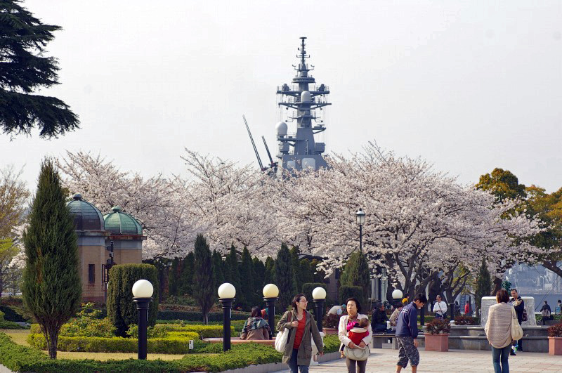 JR横須賀駅の脇のヴェルニー公園 対岸にフランス人技師ヴェルニーが建設に貢献した横須賀製鉄所が望めることや、