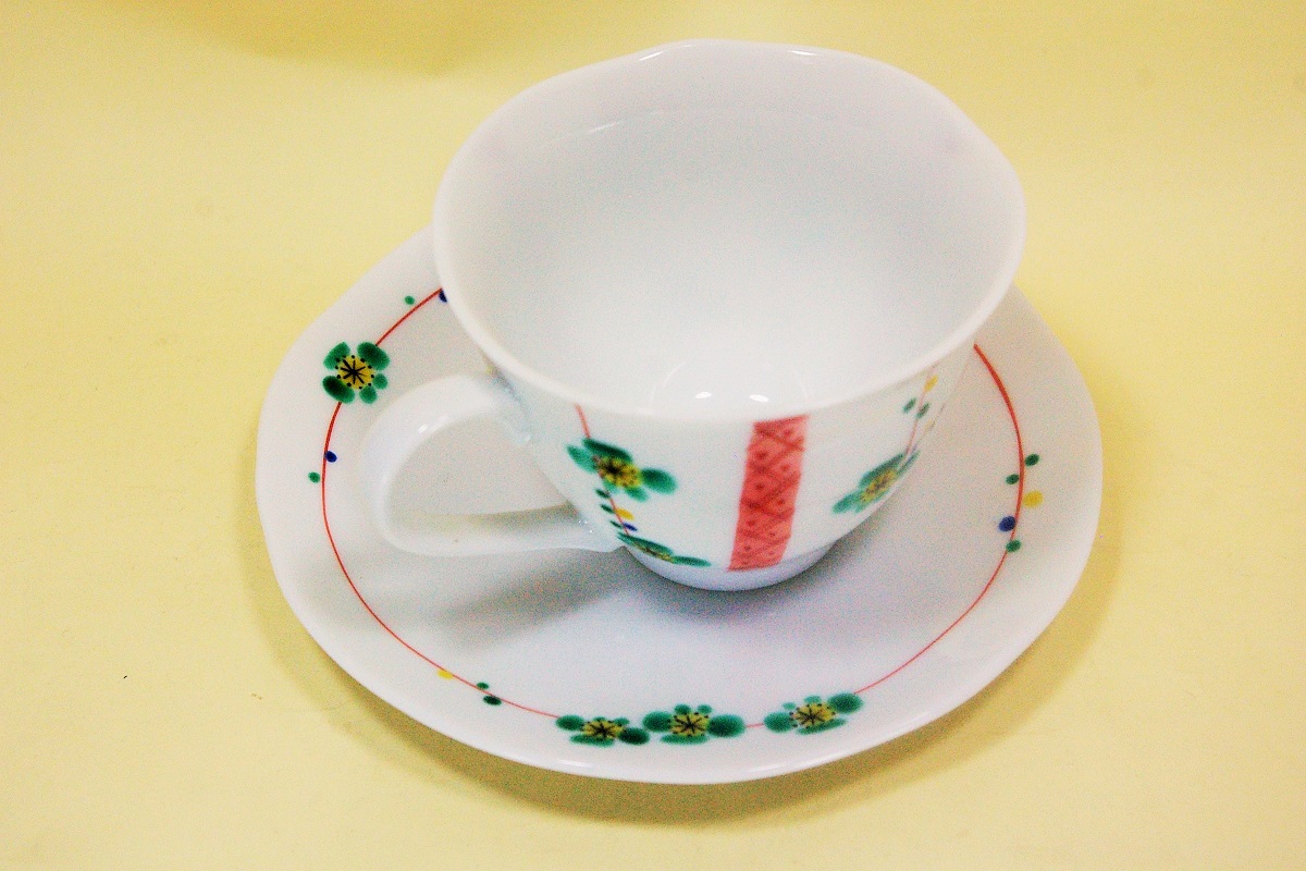 商品番号 11-H42 九谷焼 梅小紋緑 コーヒーカップ