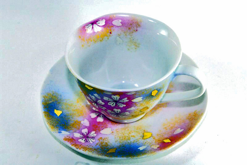 商品番号 11-H51 九谷焼 花舞ピンク コーヒーカップ