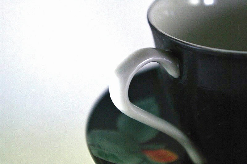 商品番号 11-H82 九谷焼 黒地サザンカ コーヒーカップ