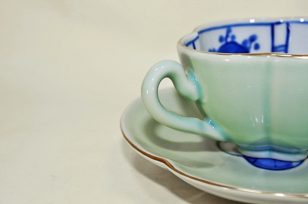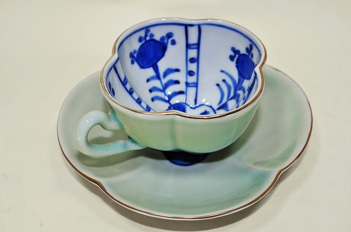 ◆◆ 有田焼 青磁割草花文 ◆◆鑑賞磁器としても愛好されています、工房 佐賀県西松浦郡有田町 |