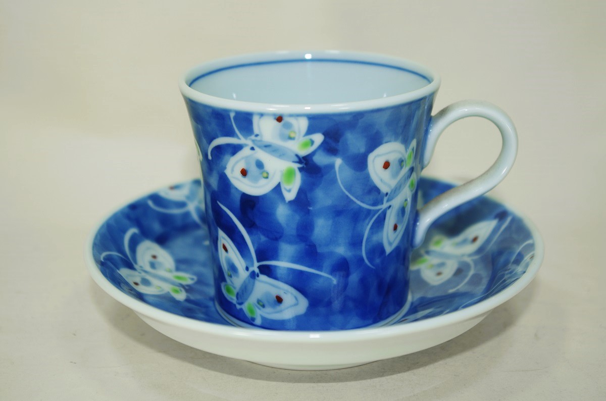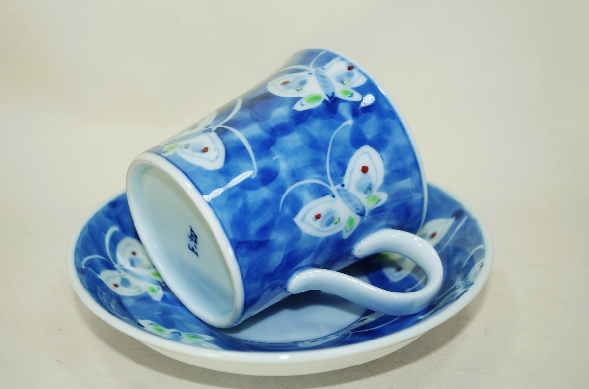 ◆◆ 有田焼 藍色蝶模様 ◆◆鑑賞磁器としても愛好されています、工房 佐賀県西松浦郡有田町 |