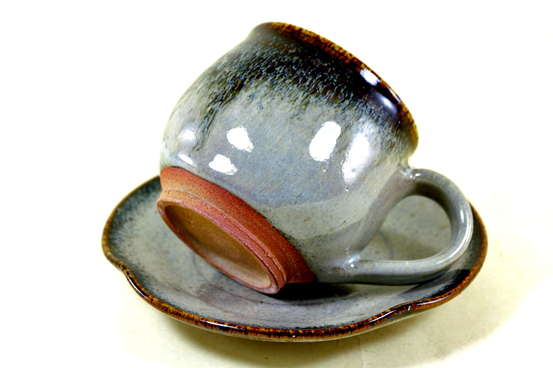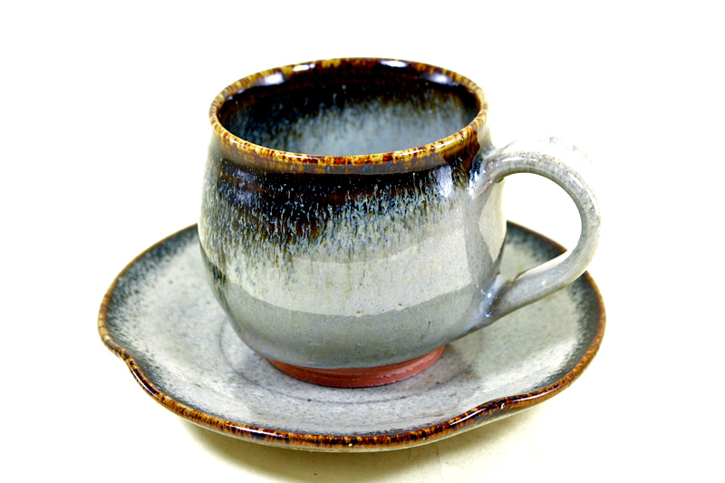 商品番号 11-X02 因久山焼 海鼠釉 コーヒーカップ カップ72φx70mm 重さ360g ソーサー136φ 容量180cc 1客 価格5,950円(税込み) 送料無料 | ||