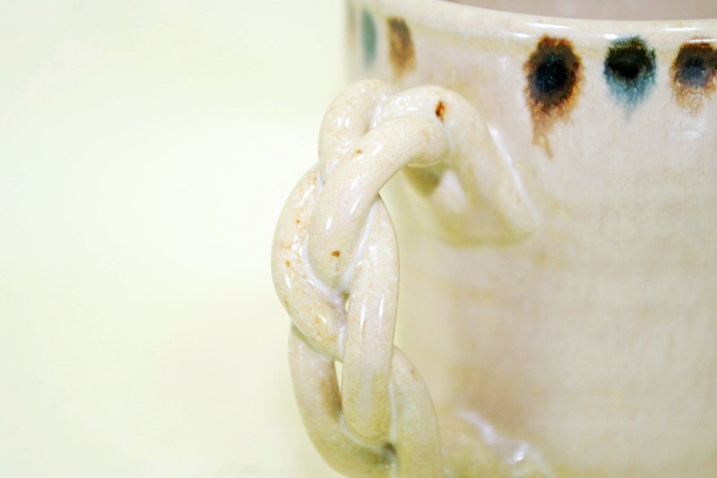 萬古焼横縞模様のカップ、素朴な模様と色合いが現代的