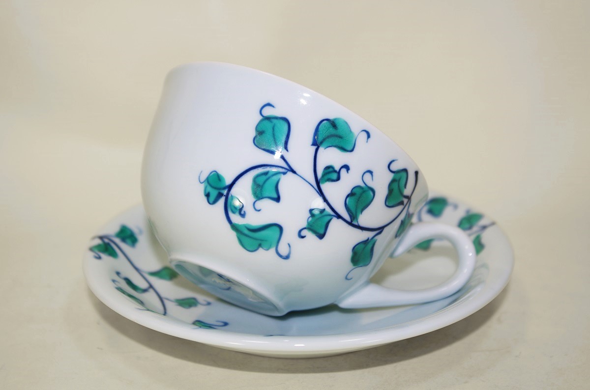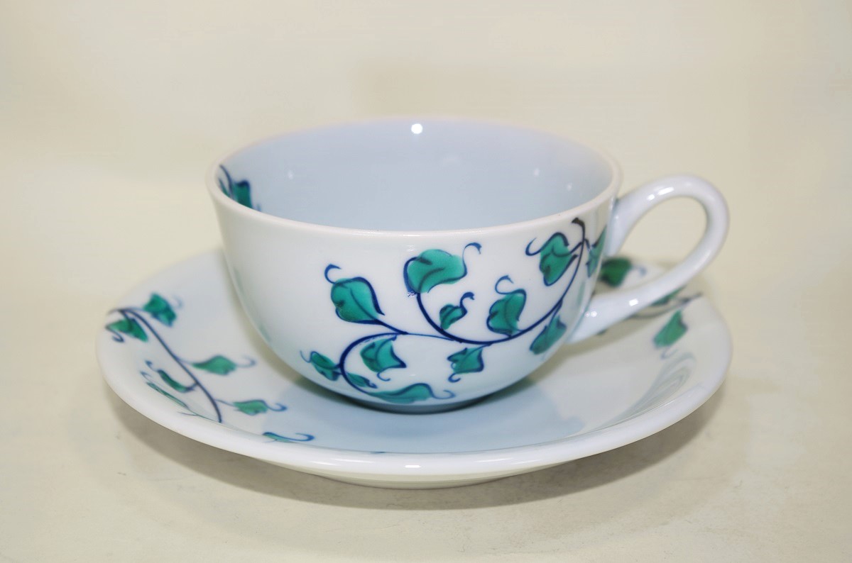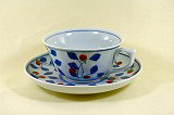 ◆◆ 有田焼ティーカップ ◆◆有田焼の特徴は「独創性」「アート性」「伝統の隠し味」が有り、白く焼きしめた肌に青の染付模様、 赤や緑や黄色の絵具で描かれた花や鳥、金色をアクセントに使う手法である。 |