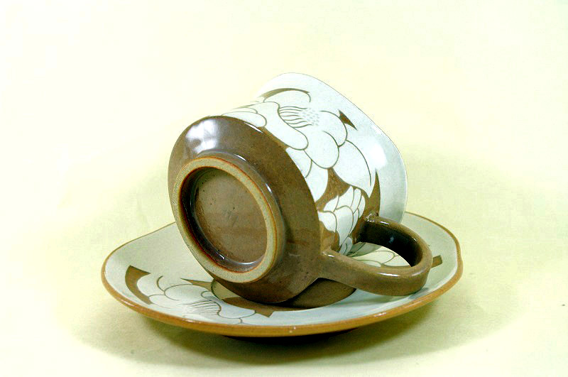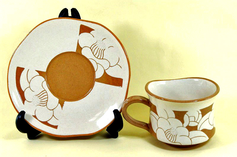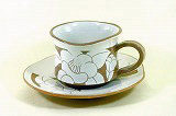 商品番号 11-J01 東雲窯 掻き落とし コーヒーカップ カップ75φx58mm 重さ250g ソーサー134φ 容量160cc 1客 価格5,250円(税込み) 送料無料 | ||