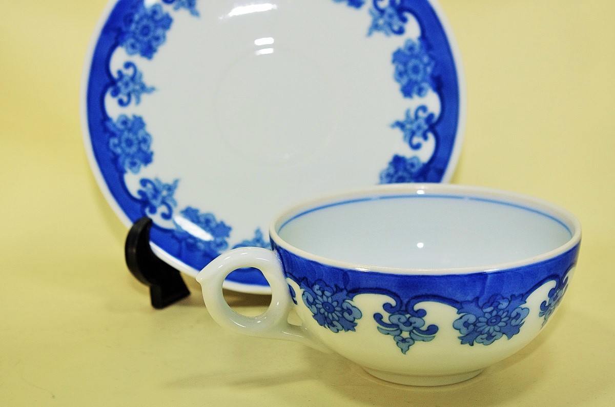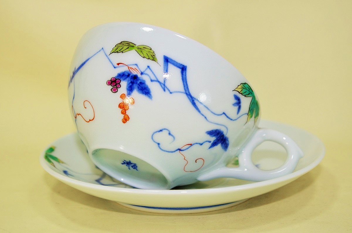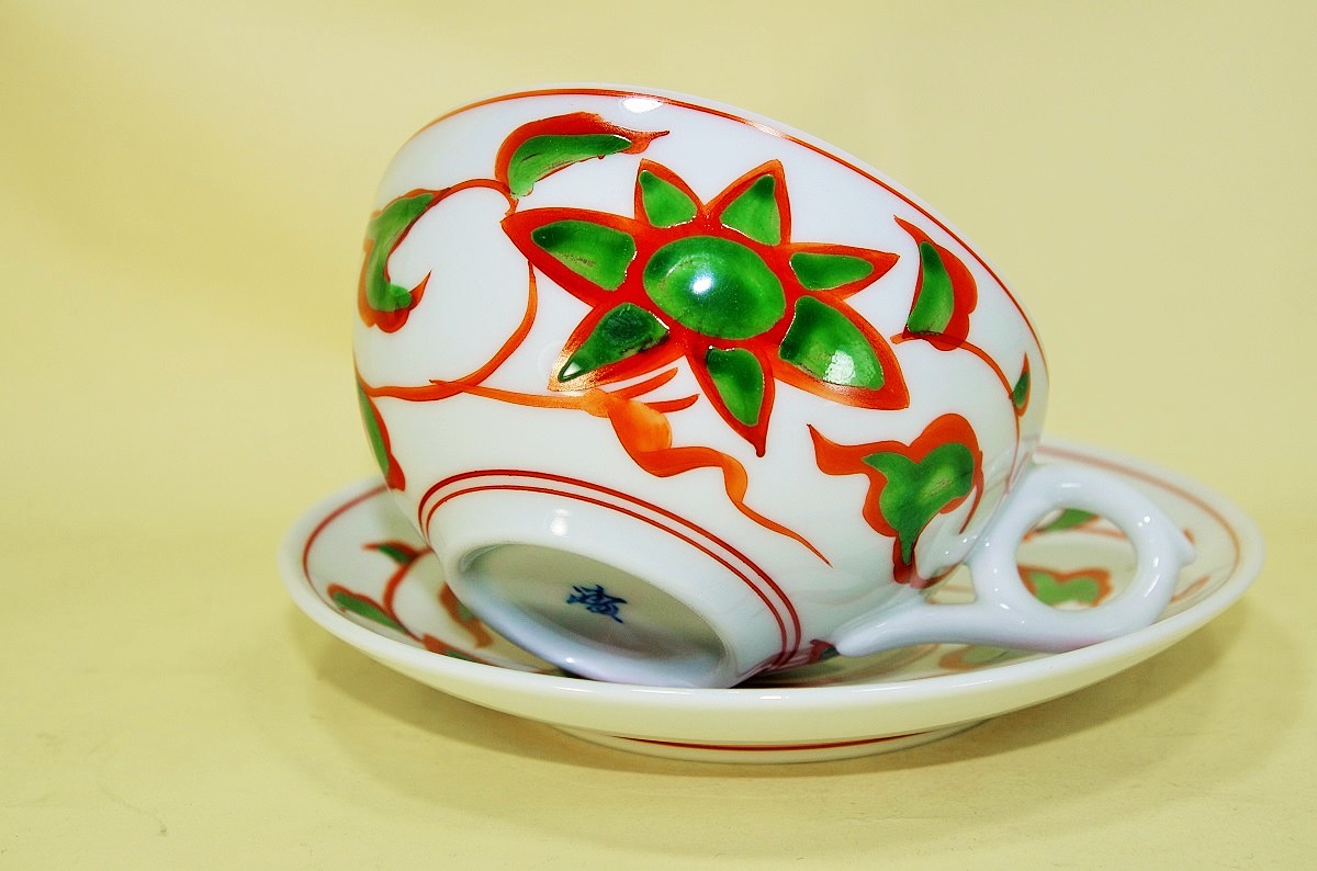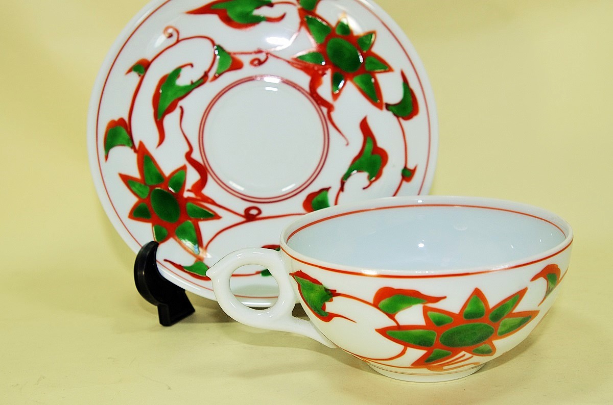 ティーカップ 伊万里焼 瀬兵窯 重さ280g ソーサー150φ 容積240cc 送料無料 拡大絵柄 ソーサー絵柄 カップ絵柄 |