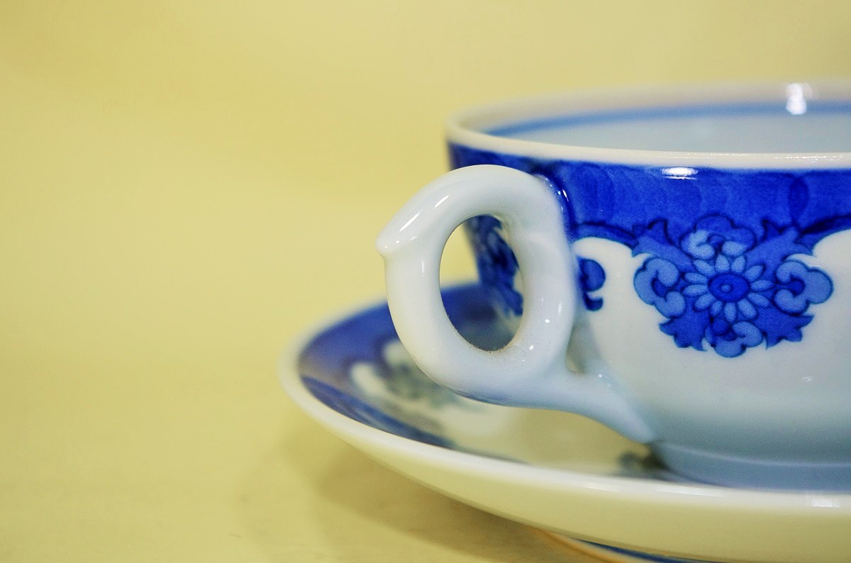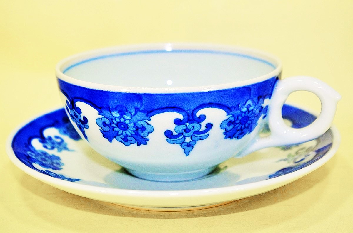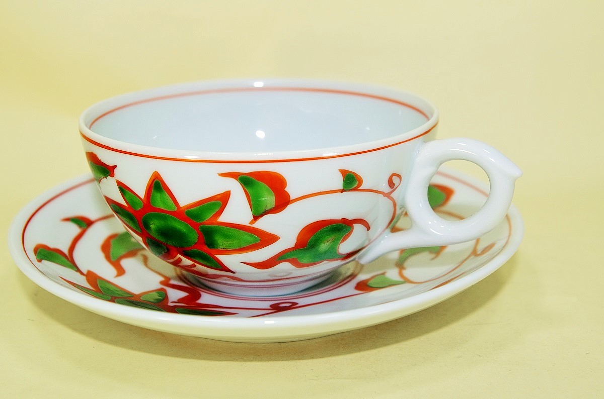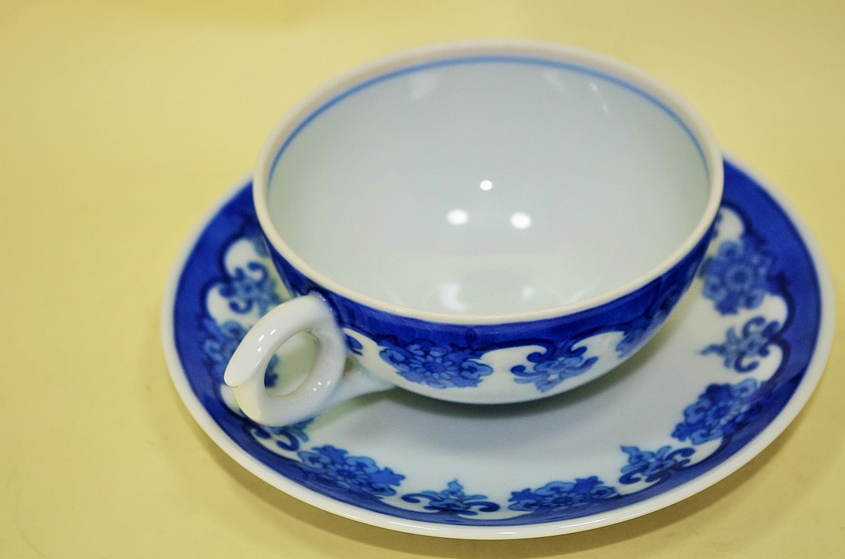 ティーカップ 伊万里焼 瀬兵窯 重さ280g ソーサー150φ 容積240cc 送料無料 拡大絵柄 ソーサー絵柄 カップ絵柄 |