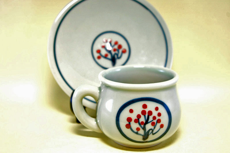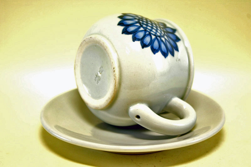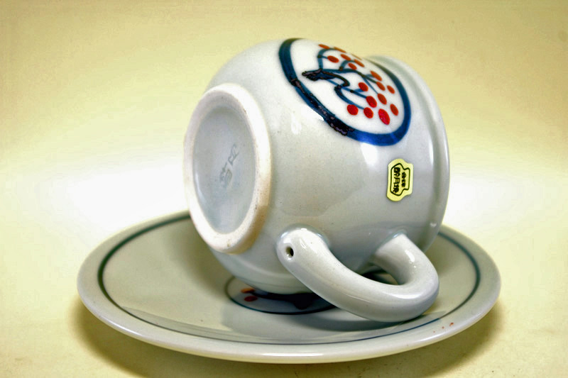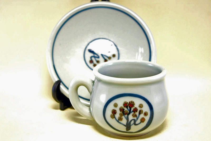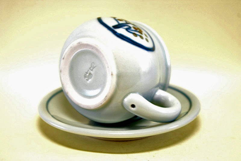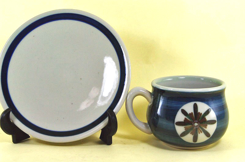 商品番号 11-Q14 本郷焼 コーヒーカップ カップ 80φx60mm 重さ370g ソーサー135φ 容量180cc 1客 価格2,600円(税込み) 送料無料 拡大画像 ソーサー絵柄 カップ画像 |