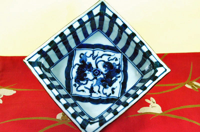 | 九谷焼小鉢蝶文 文吉窯 | 九谷焼角皿 文吉窯 |
