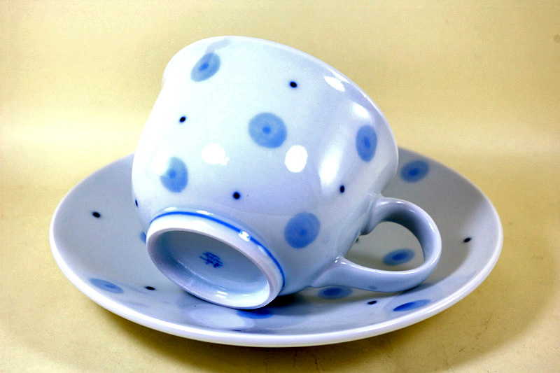 商品番号 11-V14 砥部焼 コーヒーカップ 梅山窯 カップ 85φx63mm 重さ400g 容量210cc ソーサー160φ 1客 価格2,100円(税込み) 送料無料 拡大画像 ソーサー絵柄 カップ画像 |