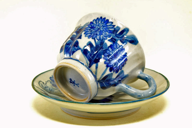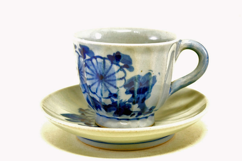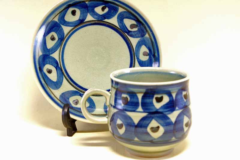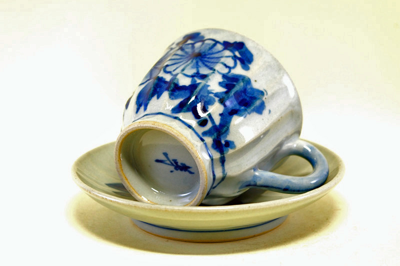 商品番号 11-ME02 限定1客 菊石窯 コーヒーカップ カップ 88mm径x68mm ソーサー 145mm径 容量200cc 重さ350g 1客 価格6,300円(税込み) 送料無料 拡大画像 ソーサー絵柄 カップ画像 |