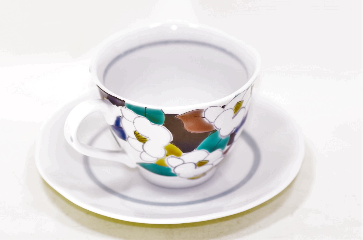 商品番号 11-H98 九谷焼 椿尽くし黒 コーヒーカップ