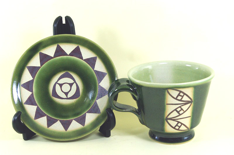 陶工房カップ 織部幾何紋 |